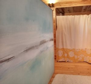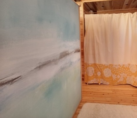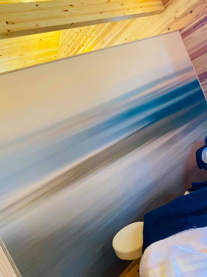明るい木目に海を感じさせる壁紙が映えて開放感一杯の非日常の世界!
